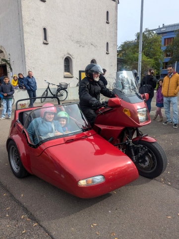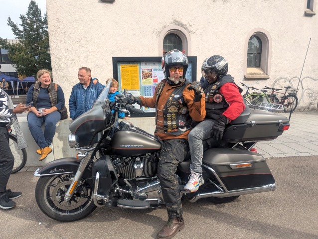 Seit vielen Jahren dürfen wir den Kindern der Kirchengemeinde St. Michael in Tübingen ein Lächeln ins Gesicht zaubern, wenn sie auf unseren Harleys mitfahren dürfen - so auch am heutigen Gemeindefest. Es freut uns sehr, strahlende Kinderaugen und die sich darin widerspiegelnde Freude zu sehen.