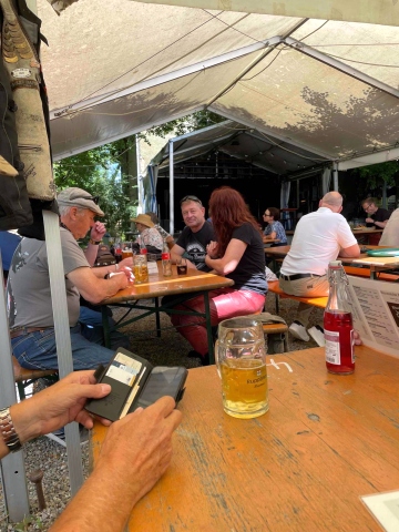 Bei sommerlich angenehmen Temperaturen machten sich 14 Biker und Bikerinnen auf 12 Bikes mit RC Nobs auf die in ca 130 Km entfernt liegende Bisonstube in Bodenwald am Bodensee auf.