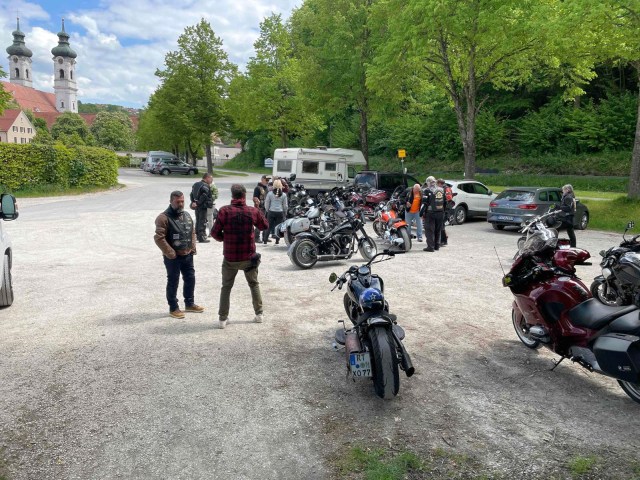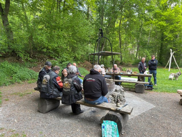 Nach einer kleinen Ansprache von unserem Road Captain Nobs starteten wir mit 17 Moppeds pünktlich um 09:15. Unterwegs kehrten wir in der Gaststätte „zum lustigen Hirsch“ ein, der uns mit der Größe der Portionen überraschte.