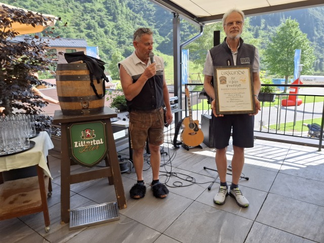 Vom Essen ziemlich platt, machten wir uns auf den Weg nach Stuben. Dabei nahmen wir noch den Gaicht- und Flexenpass für ein Gruppenfoto mit. In Stuben angekommen erwartete uns, der Tradition entsprechend, ein kühles (Frei)Bier.