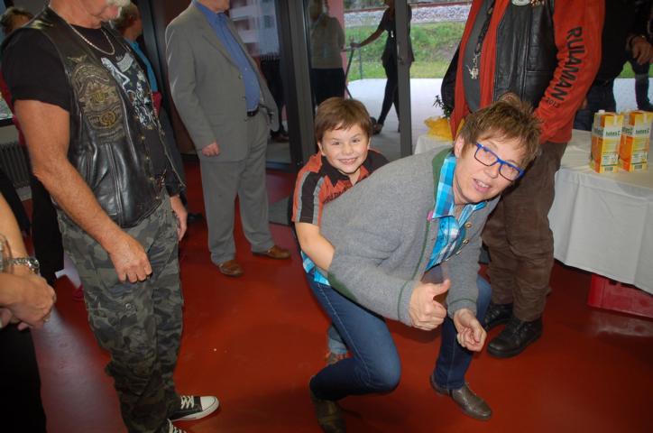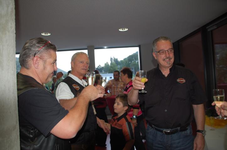Nach einem lockeren Sektempfang ging es dann zum offiziellen Dinner. Die Speisen vom Buffet waren reichlich und lecker. Der Vice hatte auch seinen Sohn vorbei. Der war ganz scharf darauf, die vielen Fahrzeuge der Feuerwehr anzusehen und auch mal in einem zu sitzen. Auch Frank interessierte sich dafür. Bei einem Bierchen kam ich mit einem Mitglied der Feuerwehr ins Gespräch und er erzählte mir höchst interessante Details rund um Einsatzwagen, Rettungsleitern usw. Jetzt weiss ich, wo unter anderem meine Steuern hinfließen. So ein Einsatzfahrzeug kostet richtig viel Geld.