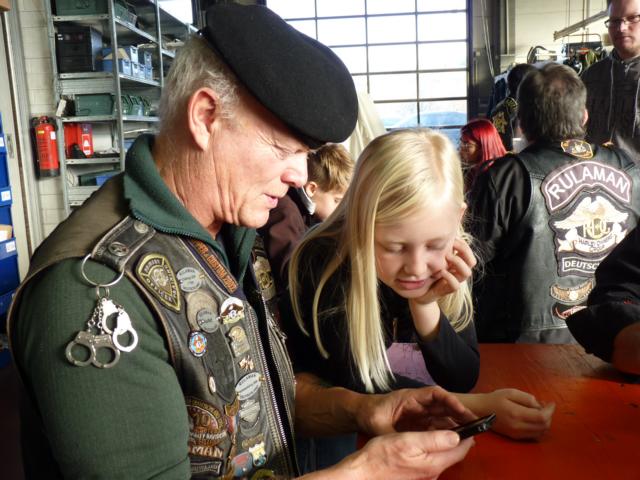 Nachdem Grudrun und Heinz die Weihnachtsfrau bzw. -mann für die Kinder gespielt hatten, hielt Heinz eine kurze Rede „zur Lage der Nation“. Besonders erwähnt wurde Pfingsten 2014. Zu diesem Termin feiern wir unser 20-jähriges Jubiläum zum Bestehen des Rulaman-Chapters. Bis dahin wird es noch viel Arbeit geben und Heinz hatte uns eine Vorstellung davon gegeben, was wir machen wollen.