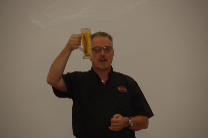 Nach einem lockeren Sektempfang ging es dann zum offiziellen Dinner. Die Speisen vom Buffet waren reichlich und lecker. Der Vice hatte auch seinen Sohn vorbei. Der war ganz scharf darauf, die vielen Fahrzeuge der Feuerwehr anzusehen und auch mal in einem zu sitzen. Auch Frank interessierte sich dafür. Bei einem Bierchen kam ich mit einem Mitglied der Feuerwehr ins Gespräch und er erzählte mir höchst interessante Details rund um Einsatzwagen, Rettungsleitern usw. Jetzt weiss ich, wo unter anderem meine Steuern hinfließen. So ein Einsatzfahrzeug kostet richtig viel Geld.